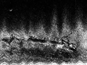 Крушение лежит на правом боку, по оценкам длину около 40 м