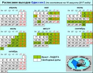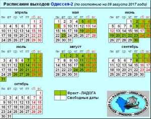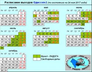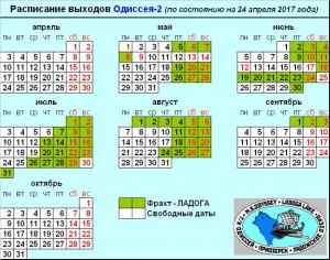 Актуальное расписание выходов ОДИССЕЯ-2 (на 27 марта 2017 года)