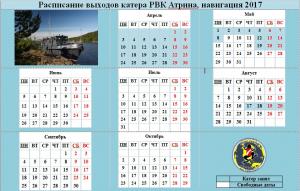 Актуальное расписание выходов катера РВК АТРИНА на 2017 год!!!