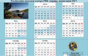Обновлено актуальное расписание выходов РВК Атрина на 2017 год (на 30.08.17 года)