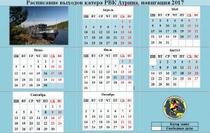Актуальное расписание выходов катера РВК АТРИНА на 2017 год!!!