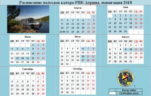 Актуальное расписание выходов катера РВК АТРИНА на 2018 год!!!