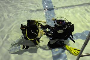Поздравляем Маргариту с первым пробным погружением с аквалангом в бассейне!!