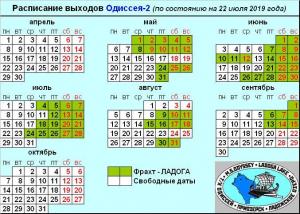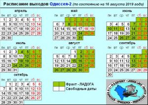 Обновлено актуальное расписание выходов ОДИССЕЯ-2 (19 сентября 2019 года)