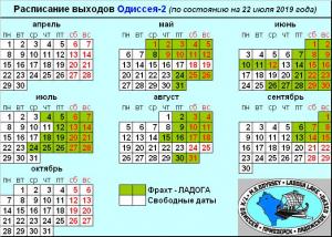 Обновлено актуальное расписание выходов ОДИССЕЯ-2 (06 августа 2019 года)
