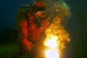 Мы недавно как раз подводный лазер настраивали, стенд еще не разобрали