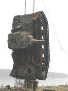 К сожалению не смог присутствовать и отснять танк и подъём (был в командировке на съёмках в г Сочи Smile ). Но как всё происходило в курсе. Конечно же "мимо шёл" совсем не отражает ситуацию с плавучим краном грузоподъёмностью в 100 тонн. Подъём готовился: танк был найден, осмотрен, разарабатывался ППР, согласовывался, проводились подготовительные работы, расчёты инженерные, финансовые, искались спонсоры и ещё масса всяких дел. Поднять можно было ещё летом прошлого года. Но...только проходящий кран (выполнял работы на Валааме и из-за шторма неделю его не пускали в Ладогу, чтобы вернуться в Питер) ждали неделю. Работа была не простая: один раз, при заведении стропов водолазный бот сорвало на быстром течении с якоря (водолаз был под водой), немного повредили леера, но всё обошлось. Так что ... это я для того, чтобы было понятно, что всё это очень не просто.