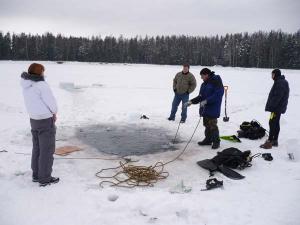 На дне похоже на ЖК. Заморочки с проездом на территорию базы (требуют денег). Ехать почти 100 км (расход бензина). Правда есть 27 метров но это уже не у лагеря и вряд ли народ захочет там нырять.