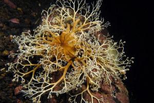 Лет десять тому назад мы с двумя Сергеями (Волков и Коваль) в р-не острова Утичий, на глубине 25 метрв, увидили одну штуковину. Позже я узнал что это звезда под названием Горгонария.