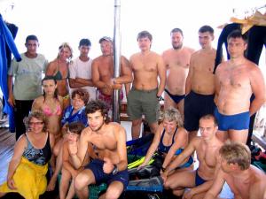 Корабль от "Марлина", либая техническая сложность нырялки, любой "газ", любое колличество баллонов, EAN32 по цене воздуха, аренда скутера. Качество от GUE. Снаряга доставляется на корабль один раз в самом начале и далее хранится на корабле под охраной, краж не было.