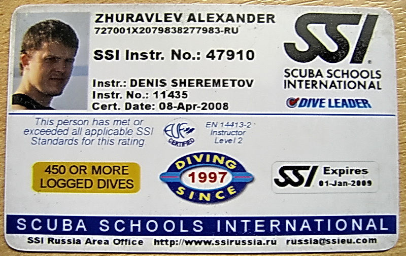 Являюсь инструктором SSI IOWD (IAOWD опечатка на сайте)