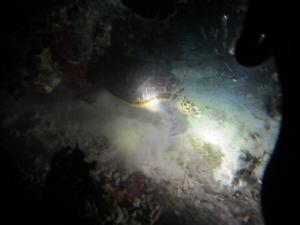 И еще интересная фотка - это черепаха, которую мы обнаружили во время ночного дайва.
