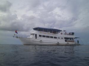 Вот и прибыл к месту дальнейшего несения службы наш новый корабль. Искушенные дайверы, взглянув на фото, конечно, скажут: - "Что такого? Обычный дайв-бот..." А это, между прочим, первый в Камбодже корабль, построенный специально для дайвинга, все остальные - это в разной степени переделанные рыбацкие лодки.