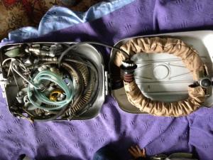 Снаряжение размещено по просьбе Елены Черкесовой. Цены предлагайте и обсуждайте с ней. Баллоны частично опрессованы, частично нет. Некоторые забиты. Много ЗИПа для советских ребризеров. Сухарь TYPHOON, требует замены шейной манжеты. Электромотор для лодки и надувная лодка. Гидрокостюмы, перчатки, шлемы, боты, бисюки.