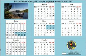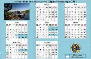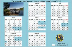 Обновлено актуальное расписание выходов катера РВК Атрина (на 14 июля 2014 года)