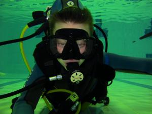 Поздравляем Андрея с первым индивидуальным, пробным погружением с аквалангом в бассейне!!!