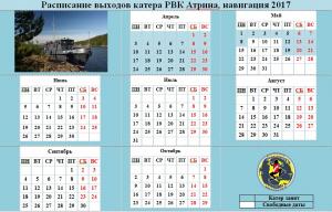 Актуальное расписание выходов катера РВК АТРИНА на 2017 год!!!