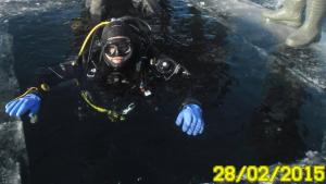 фото.... На плечах лямки походу у него на спене разгрузка ( сковорода, плити) так как в зиму надо много свинца а поясница столько не выдержит..... Он просто не смог скорее всего скинуть пояс чтобы получить положительную плавучесть