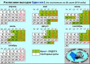 Обновлено актуальное расписание выходов ОДИССЕЯ-2 (19 сентября 2019 года)