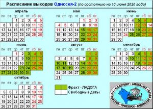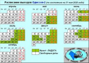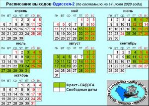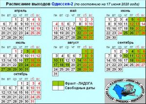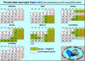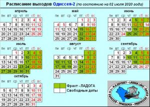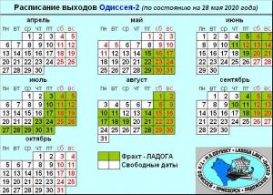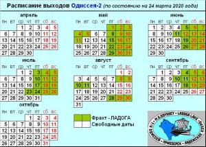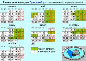 Актуальное расписание выходов ОДИССЕЯ-2 (на 02 марта 2020 года)