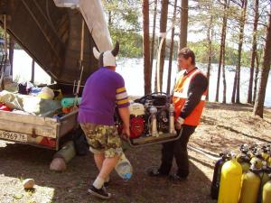 В программе - очистка дна озера и прилегающей к берегу территории от мусора, которого, как всем известно, на Комони очень много. Дайверам, участвующим в очистке дна озера забитые баллоны и груза предоставляются бесплатно.