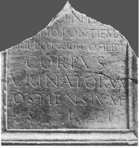 древняя корпоративная вывеска уринаторов, найденная в порту Остия