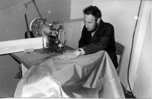 Вильям Муравьев прошивает оболочку подводного дома "Спрут-М" (фото из архива А.Б.Королёва)