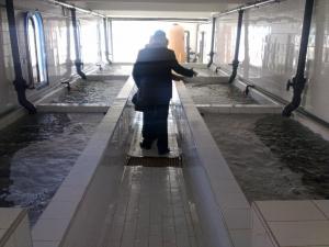 Промывка устриц на "фабрике". Лагуна в Валидии