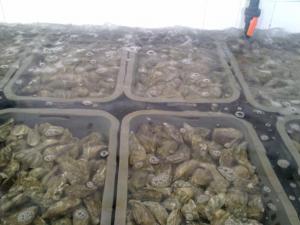 Промывка устриц на "фабрике". Лагуна в Валидии