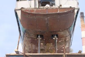 В начале декабря начались работы по ремонту и модернизации подводной части. Для этого Одиссей-2 был поднят на слип.