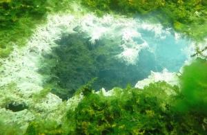 Экстремальный химизм в ямах где пейзаж как в долине вулканов. Там и происходит все самое интересное. Вероятно периодически происходит излив вод с солями снизу. Одни водоросли погибают, другие их обрастают, соли выпадают в осадок формируя жесткие корочки.
