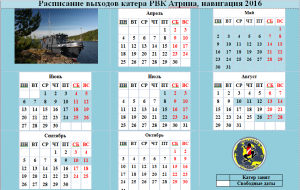 Актуальное расписание выходов катера РВК АТРИНА на 2016 год!!!