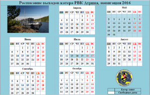 Актуальное расписание выходов катера РВК АТРИНА на 2016 год!!!