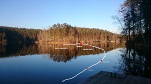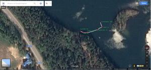 Вдоль берега на 5-7м, дальше, примерно от тарзанки, к острову перешеек на такой же глубине( там как раз мина и авиабомба) и вдоль острова(как бы обратно) каменная коса ( на 7-8м) там мотолюлька. на фото острова, если увеличить, буйки видно. примерную схему полигона вывешу.