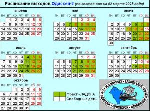 Актуальное расписание выходов ОДИССЕЯ-2 (на 02 марта2025 года)