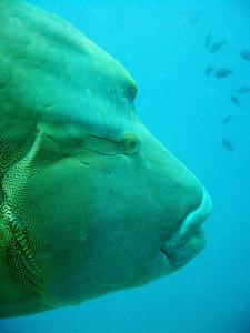 Рыба-Наполеон ( Cheilinus undulates )Получила свое название из-за выступа на голове, который напоминает головной убор императора Наполеона. Рыба также относится к семейству губанов. Челюсть наполеона очень хорошо развита, поэтому он засасывает добычу. Также как и большинство губанов, рыба-наполеон с возрастом меняет окрас, от серовато-желтого до сине-зеленого с рисунками на голове.