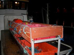 Корабль профиль. Видна лесенка по которой будем выходить с баллонами.