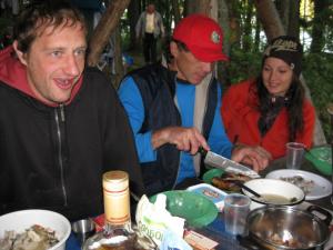 Вечером компания значительно разрослась, все активно ставили палатки разжигали мангалы и готовились к ужину.