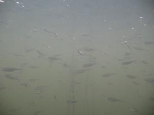 Железа дофига, понырять нормально не дали, регата какаято. Три или четыре многовёсельных баркаса с кучей мааааленьких матросикофф шныряли по акватории и бодро плюхали огромными вёслами по мутной водичке. А довелось бы всплыть рядом, плюхнули бы и по башке, так, интереса ради .