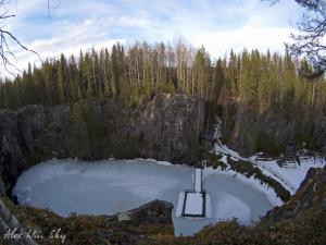 ____На третий день отправились в лес, к карьеру через дорогу. Метров триста по склону, меж деревьев и мы у второй чаши, то же замерзшей. Выпилили две майны и пошли. Состав у нас с первого дня был разбит на две подгруппы Хоп-Хоп+Nave и Sky+DenisS+vioch. Заходили же вместе.