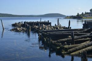 были только у залива, что справа от ГЭС, там полно бревен, старых причалов и прочей дряни
