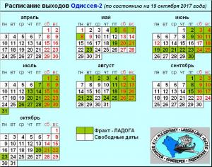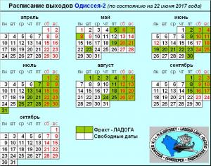 Актуальное расписание выходов ОДИССЕЯ-2 (на 27 марта 2017 года)