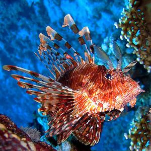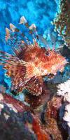 И выбеленный вспышкой коралл удачно заменен! Теперь он перестал отвлекать внимание и взгляд зрителя без помех "привязывается" к глазу крылатки. |