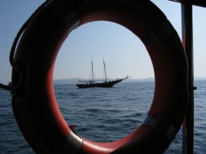 Всплывать нужно попарно. На судне наблюдают за поверхностью воды и если пара всплыла далеко, зодиаком буксируют до трапа. Как только все всплыли (проверяют по списку), идем в порт. Там уже готова следующая группа. Мы выгружаемся они загружаются. Вот такой дайверский поток в конце сентября. Интересно, а что же твориться в разгар сезона?