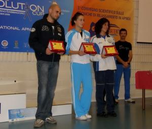 | На первой фото Вегерина О. первый фридайвер покоривший воды Венеции. На второй абсолютный чемпион Мира 2009 (Дания Архус) хорват Г.Голак в середине экс чемпионка Мира Бабич Н. из Питера справа вице чемпионка Мира М.Барберо из Италии. |